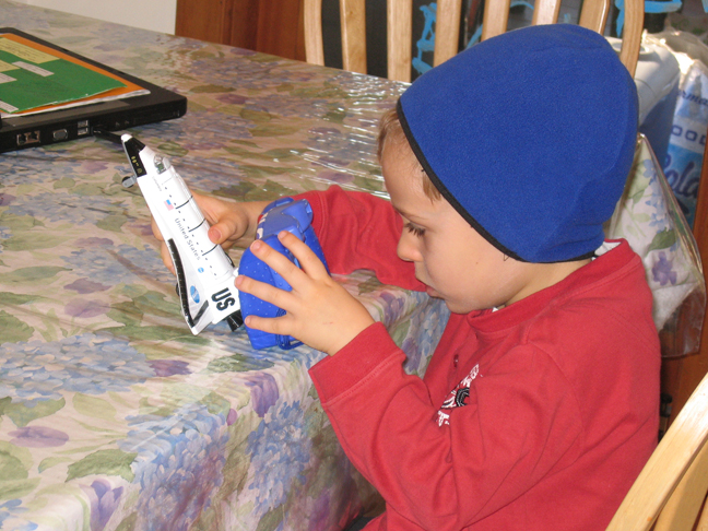 (Above) Ben using his new camera to take a picture of the space shuttle blasting off!