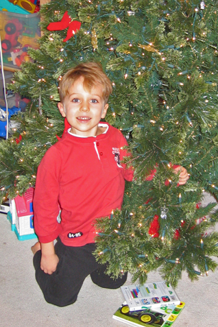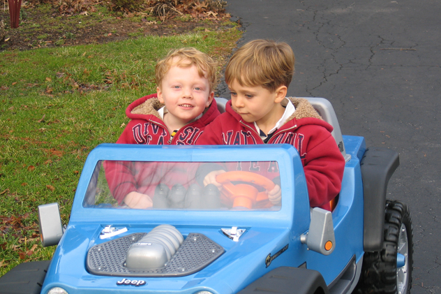 (Above, and below) Santa's big hit this year was an electric car, which Ben and Chris have been taking all around the neighborhood!