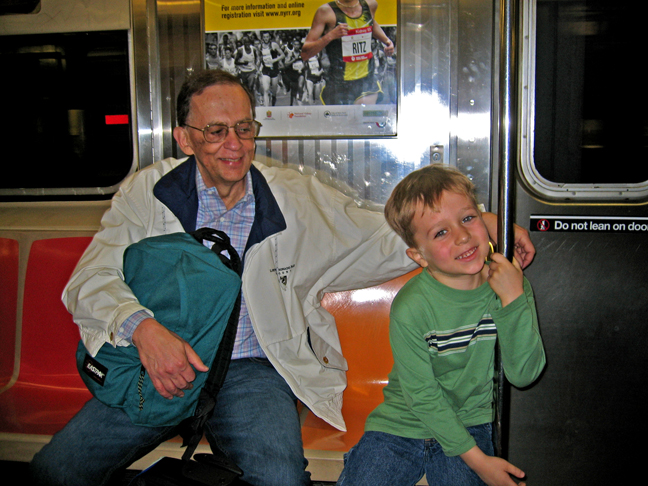 Ben and Granddad on the New York City subway.
