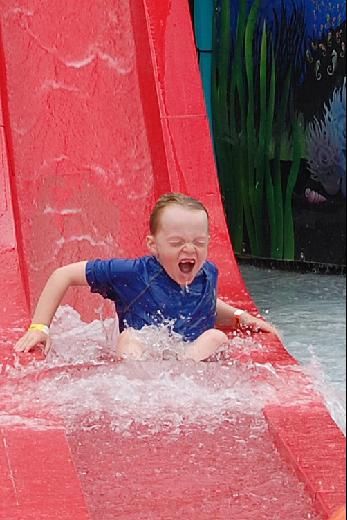At Hershey Park, Chris's favorite attraction by far was the water slides! (On the right is Marsha's longtime friend, Mark.) |