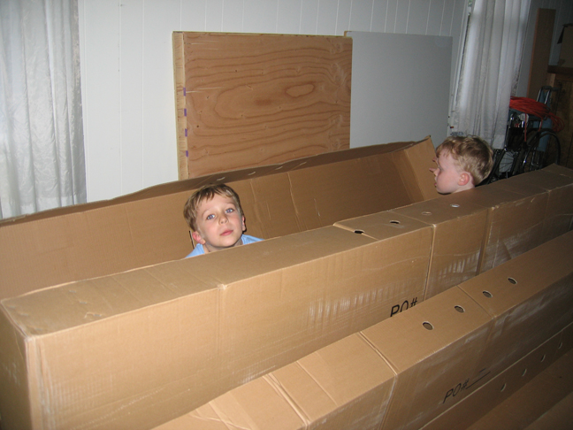 While Daddy was assembling the new play-house in the back yard, Ben and Chris