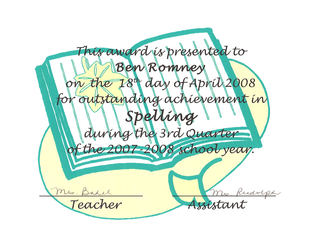 Yesterday, Ben got an award at school for excellence in Spelling: