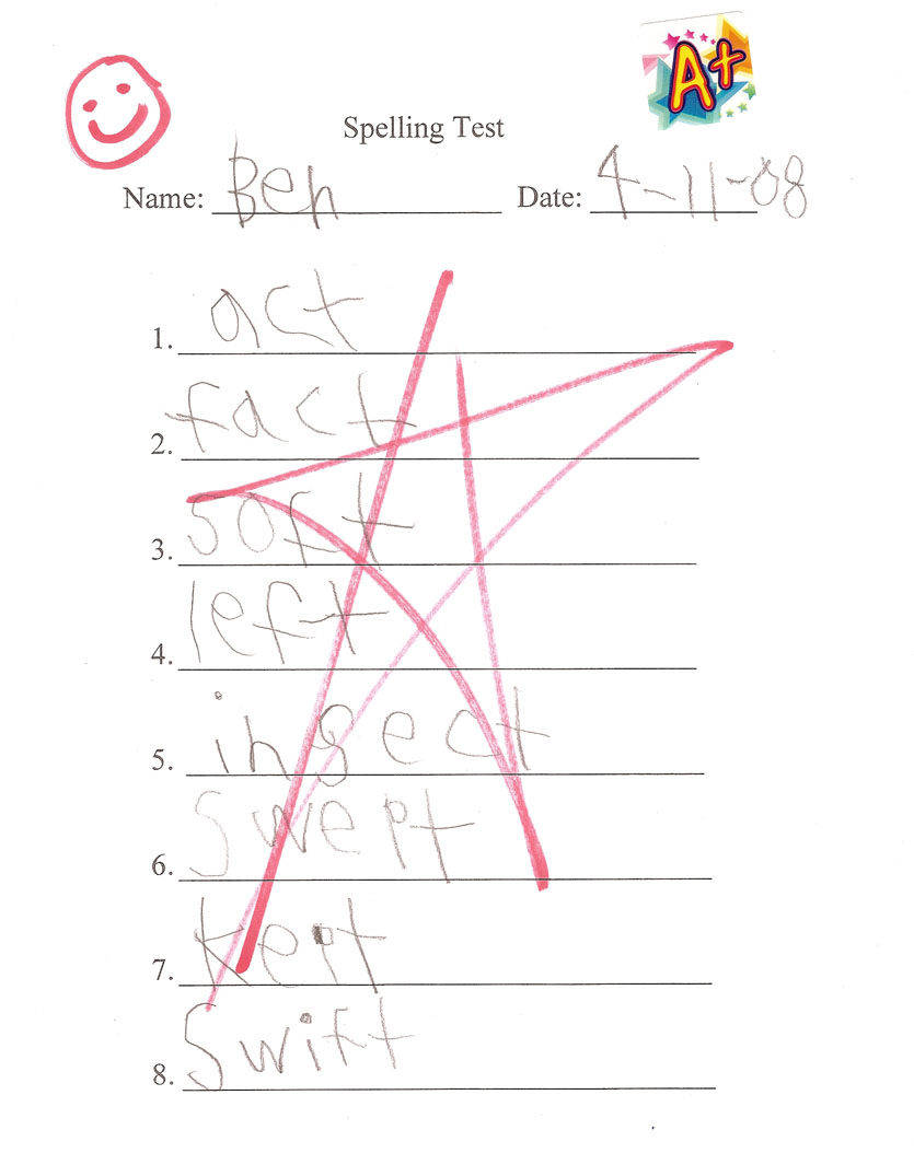 Here is one of his recent spelling tests.